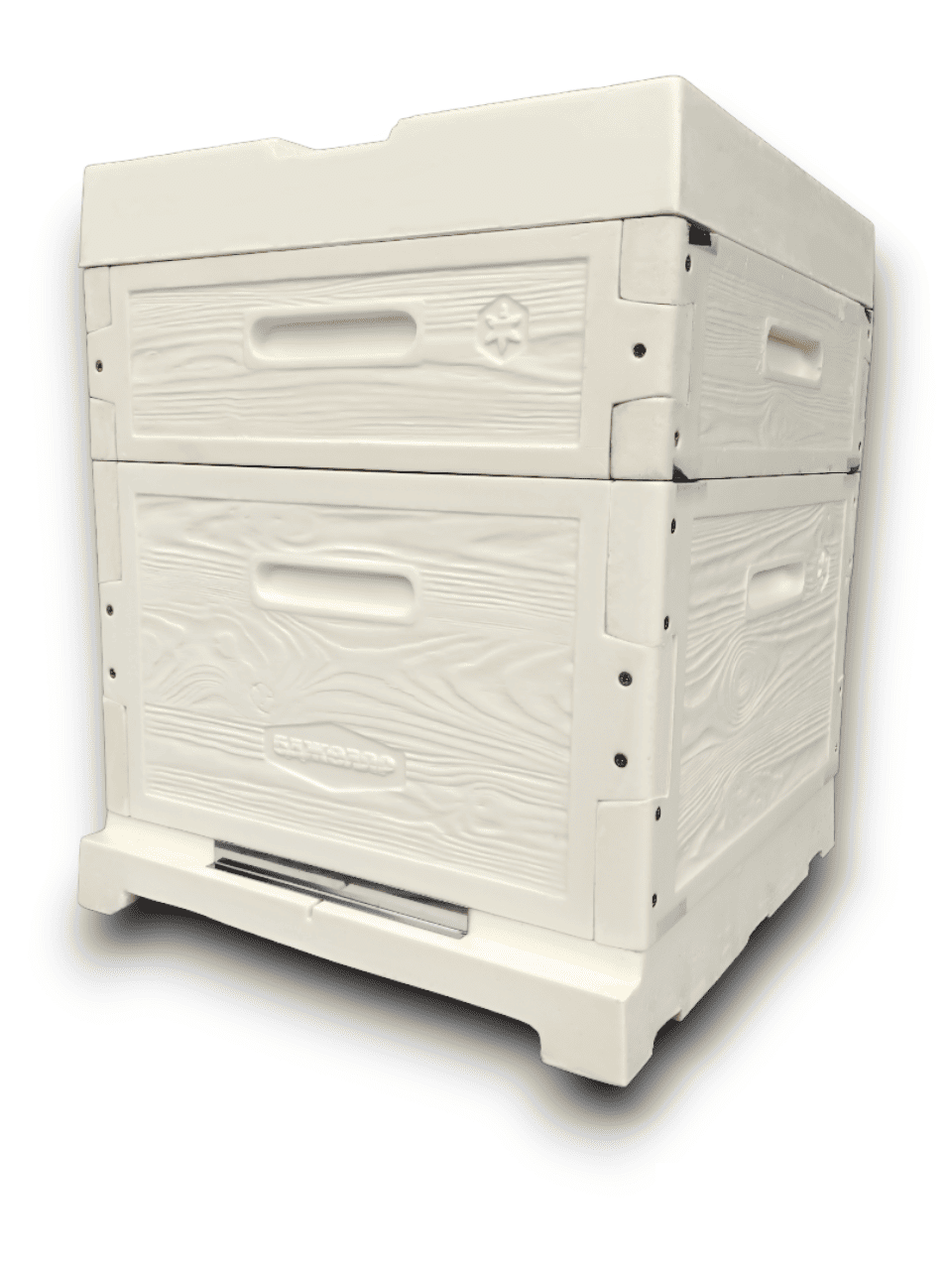 Посилення плашками з нержавіючої сталі для постановки на бруси та під стяжний ремінь. Передбачена функція постановки вулик на вулик (відповідні елементи в криші вулика)