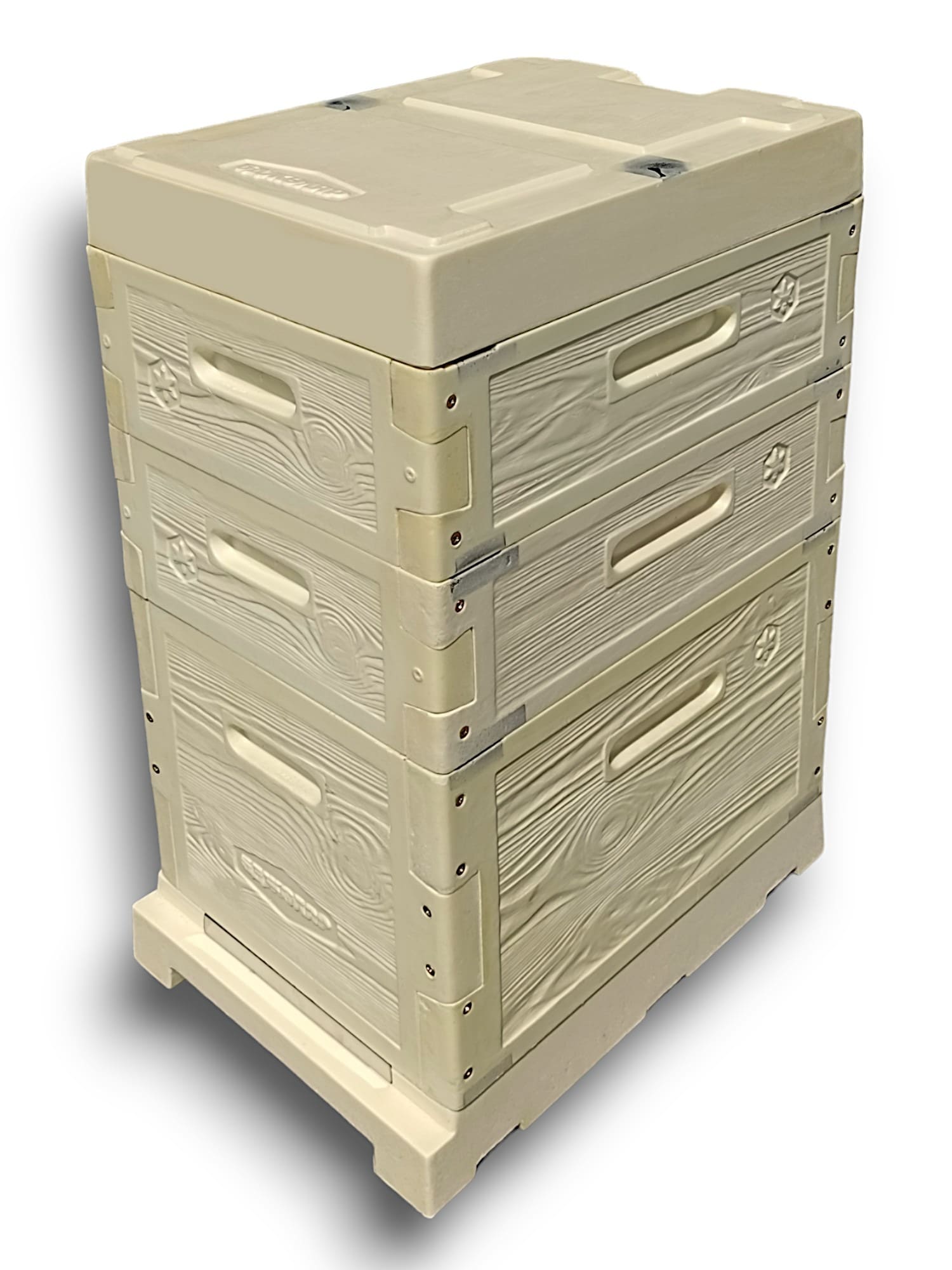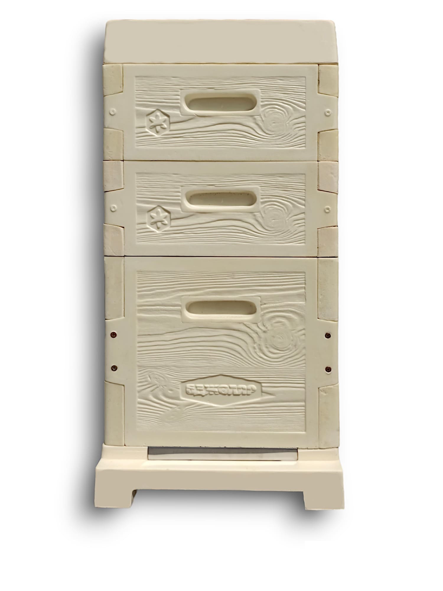 Посилення плашками з нержавіючої сталі для постановки на бруси та під стяжний ремінь. Передбачена функція постановки вулик на вулик (відповідні елементи в криші вулика)