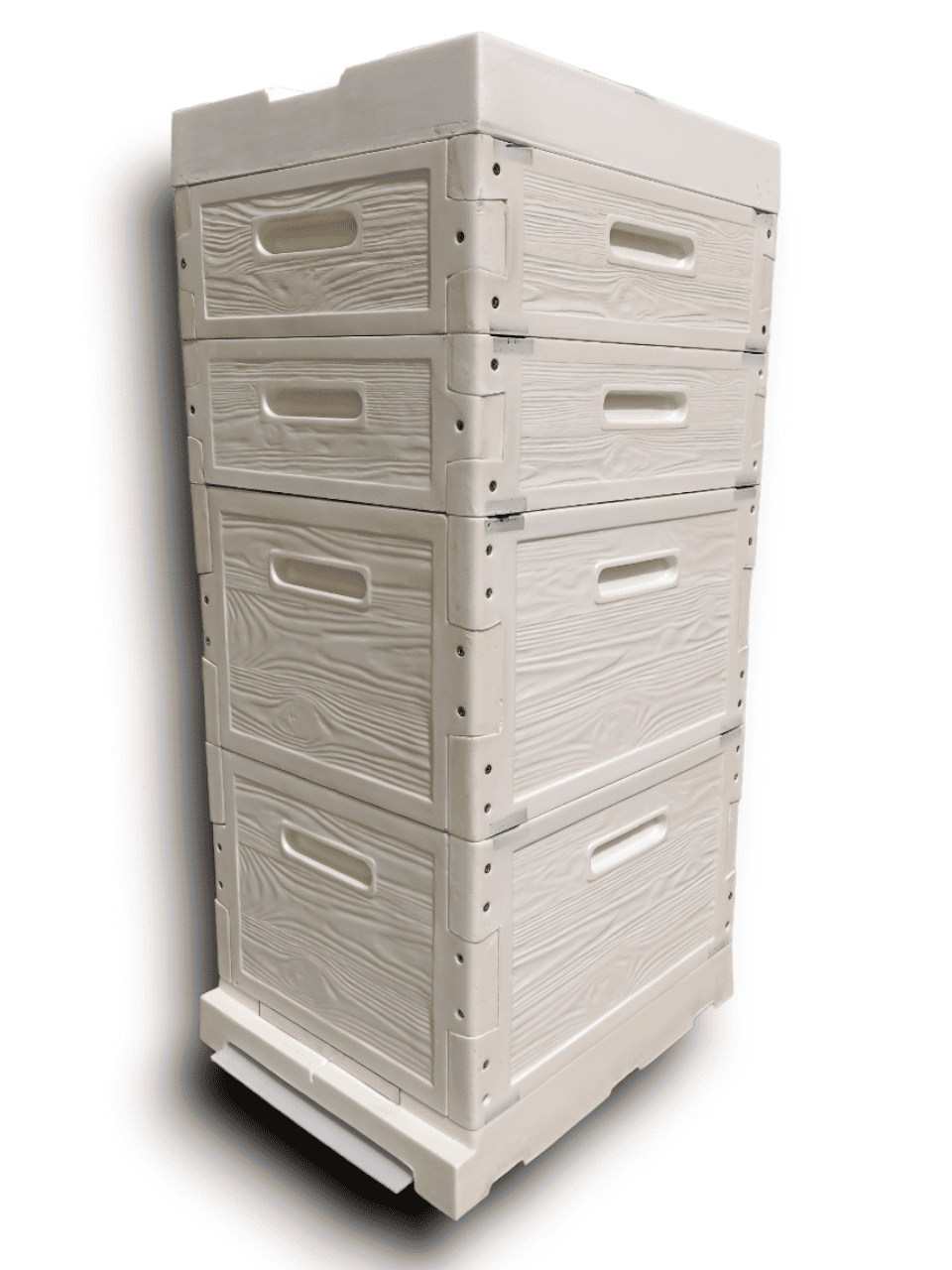 Криша висока багатофункціональна з пінополіуретану (надрамковий простір 4см) з можливістю постановки вулик на вулик (відповідні частини у днові), проріз’ю під скреп та функцією глухого дна.